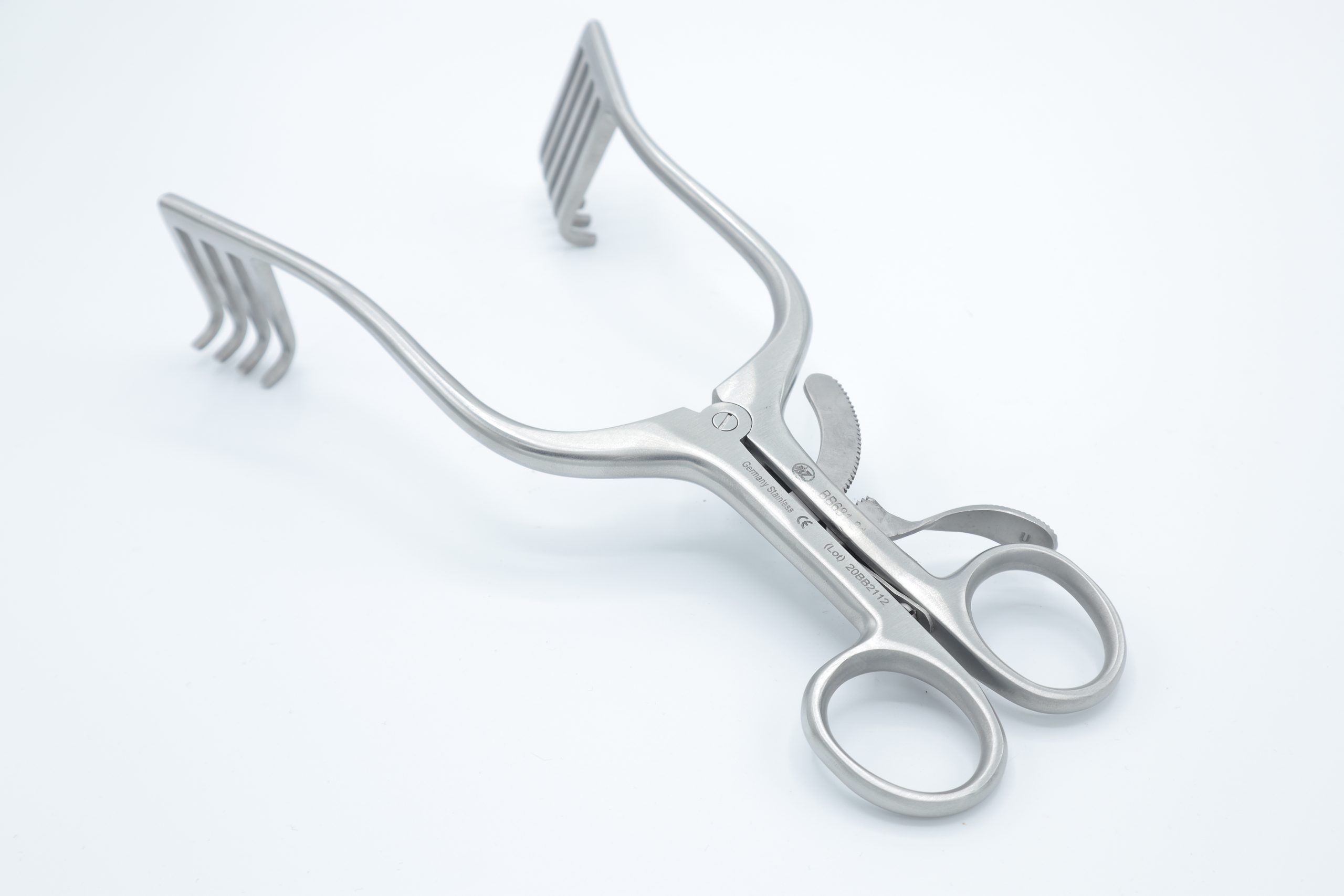 طراحی چنگکی کند: فکهای چنگکی با نوک کند (blunt) و عرض 2.5 سانتیمتر، برای کشیدن ملایم بافتهای نرم بدون ایجاد پارگی یا آسیب، ایدهآل برای جراحیهای ظریف.