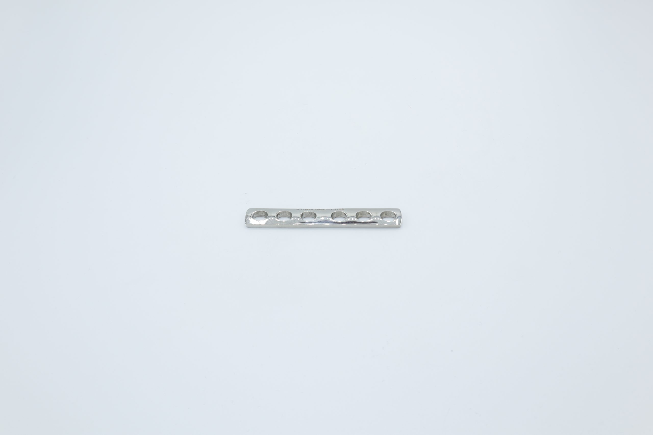 • ابعاد و طراحی: طول متناسب با 6 سوراخ (حدود 80-100 میلی‌متر بسته به مدل)، ضخامت 3.5 mm، با سوراخ‌های بیضی‌شکل برای فشرده‌سازی دینامیک (Dynamic Compression) و امکان خم‌کاری محدود برای تطبیق با آناتومی استخوان.