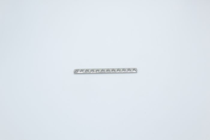 طراحی صاف و انعطافپذیر: پلاک صاف با طول 144 میلیمتر (12 میلیمتر فاصله بین سوراخها)، مناسب برای بازسازی استخوانهای بلند و شکستگیهای چندقطعهای در نواحی حساس مانند فمور، تبیا یا رادیوس.