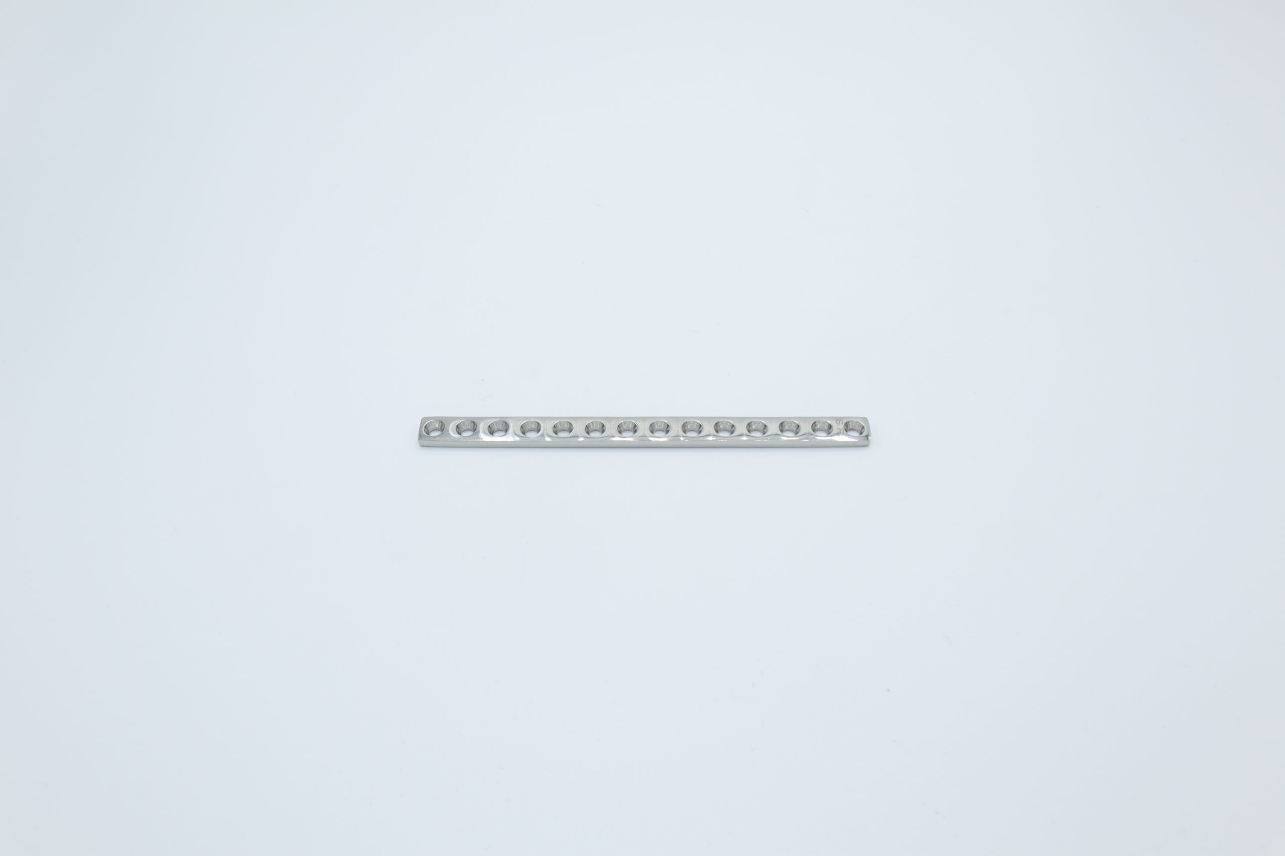 • طراحی صاف و انعطاف‌پذیر: پلاک صاف با طول 168 میلی‌متر (12 میلی‌متر فاصله بین سوراخ‌ها)، مناسب برای بازسازی استخوان‌های بلند و شکستگی‌های چندقطعه‌ای در نواحی حساس مانند فمور، تبیا یا هومروس.
